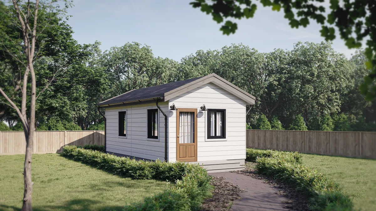 Our Studio ADUs are is the perfect small addition to your backyard for a single person or even a studio or workspace for your hobbieButtons or business!